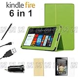FINTIE(TM) Green PU Leather Folio Case Cover Value Package with free Screen Protector/Stylus/USB cable/Car charger for Amazon Kindle Fire 7" Tablet